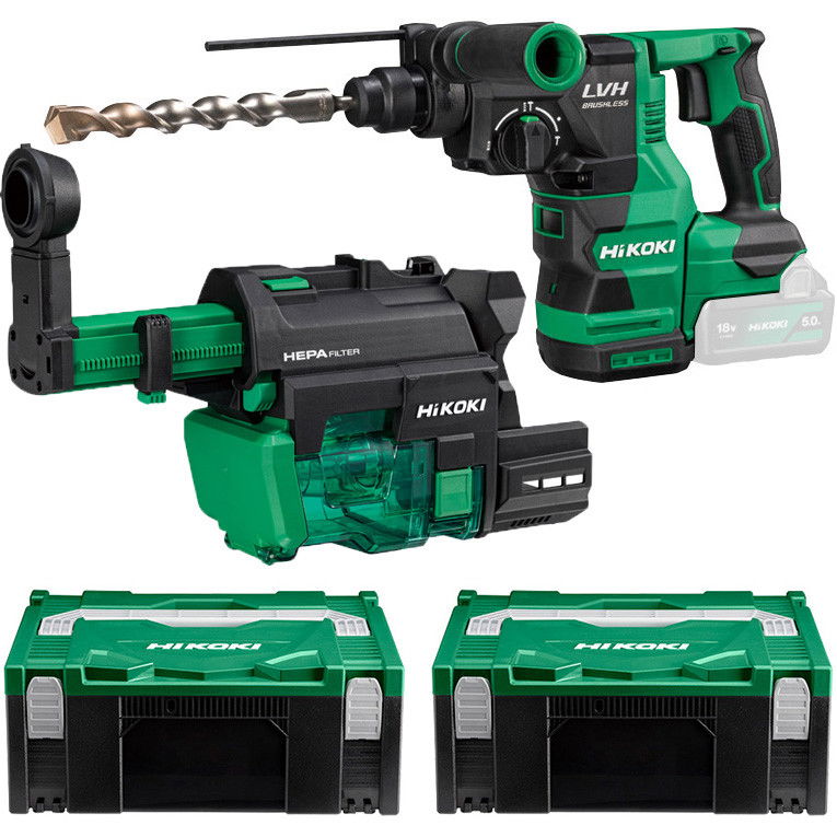 HiKoki DH1826DA-W3Z akkus SDS-plus fúró-vésőkalapács porelszívóval (akku és töltő nélkül, 2 db Hitbox kofferrel)